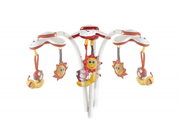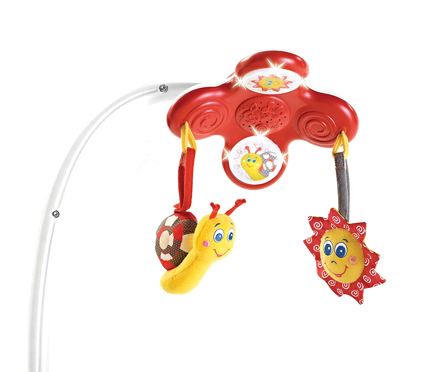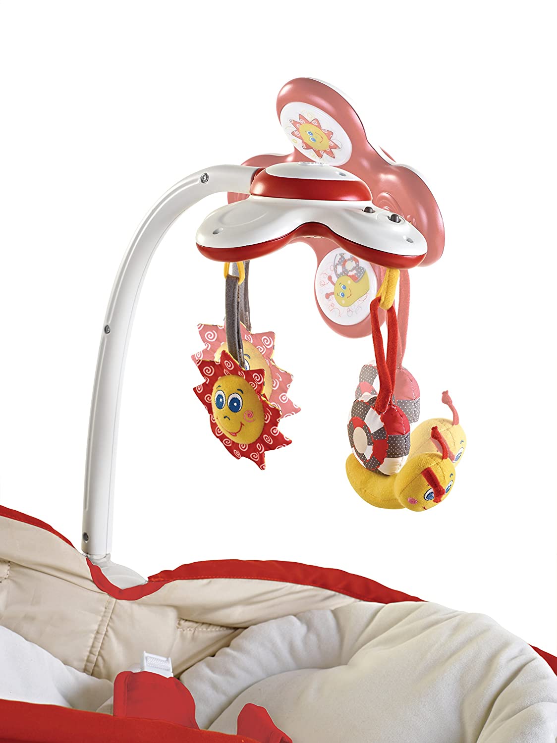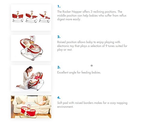 Поместете ја висечката електронска играчка на Рокер Напер доволно блиску до дланката за бебиња за да помогнете во вежбате за моторни вештини, прво со едноставно кревање рака и дофат на играчката, а подоцна со фаќање и влечење.