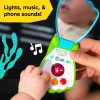 Истражете ги бои, светла и звуци од морето со овој шарен музички телефон! Бебето може да го притисне копчето за да слушне мелодии, телефонски звуци и „здраво“ на англиски, француски и шпански. Огледалцето со peek-a-boo ја поттикнува самоспознавањето, а светлата светат во ритам за учење на причина–последица.