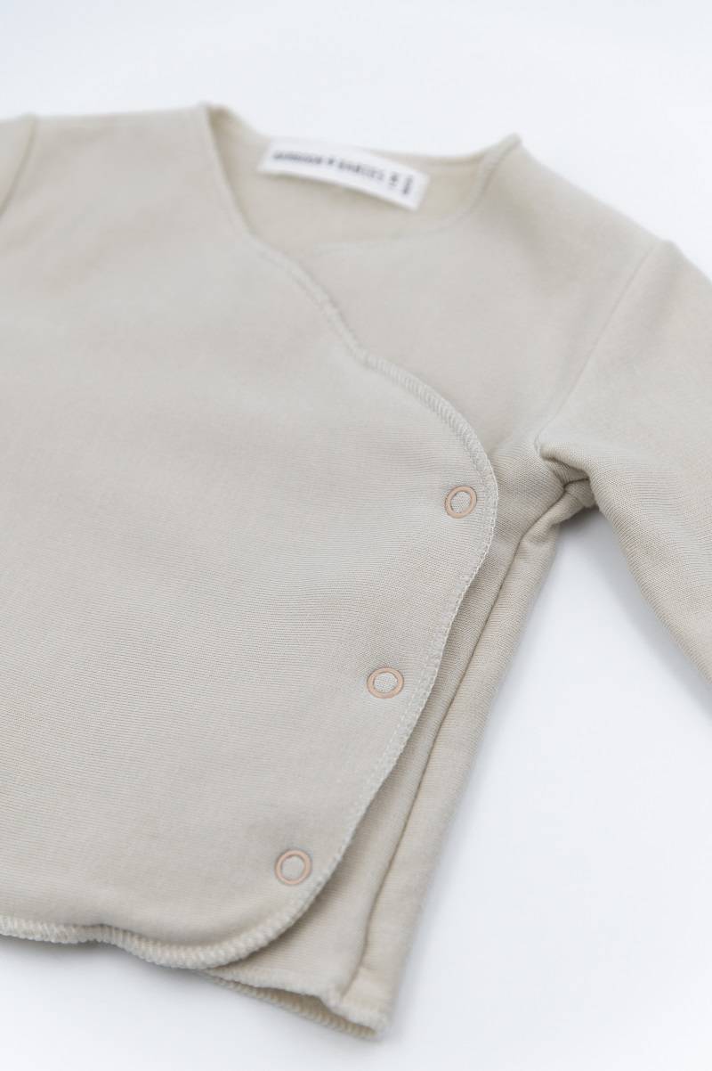 Блуза со долги ракавиза бебе, изработена од бамбус вискоза и органски памук материјали кои се меки, дишечки и нежни за чувствителната кожа. Оваа блуза е удобна, практична и идеална за секојдневно носење, обезбедувајќи природна удобност и топлина за вашето бебе.