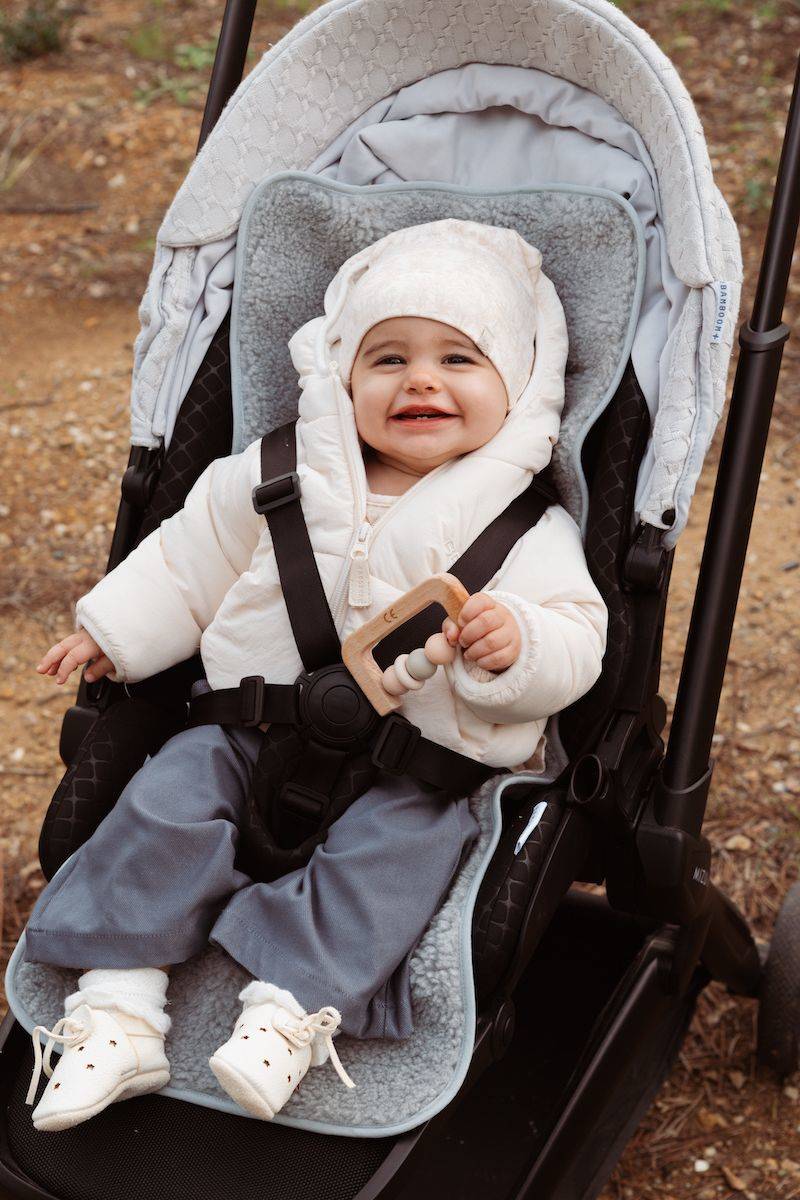 Зимската подлога Air n Go од Bamboom е подлога за детска количка, изработена од топол материјал, идеална за заштита на вашето бебе од студот.
