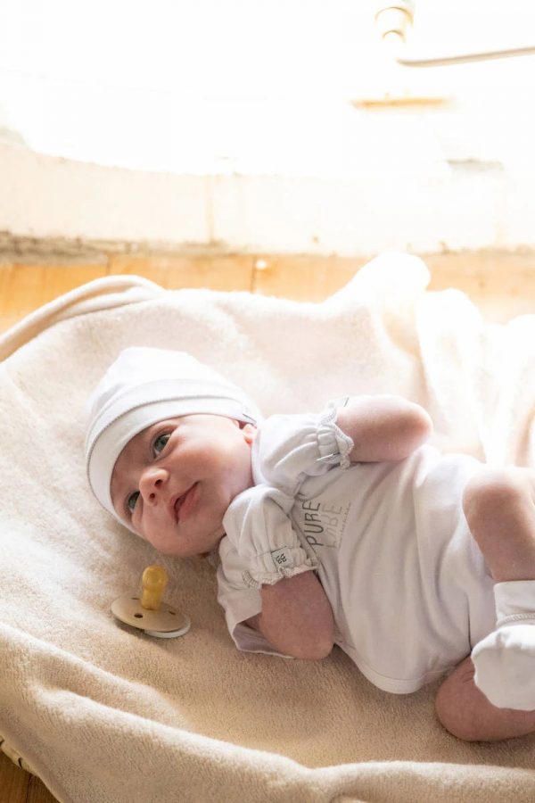 BAMBOOM Сет Капче и Чорапи За Новороденче WHITE BIANCO