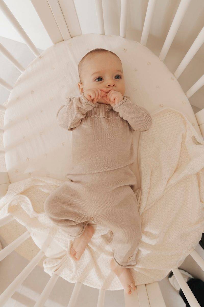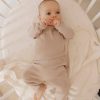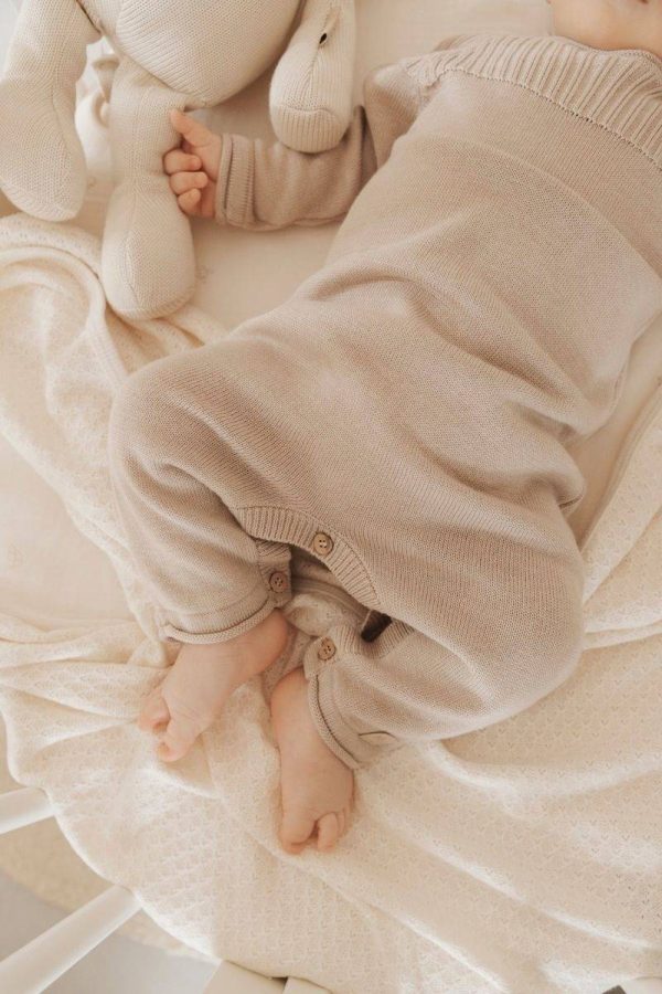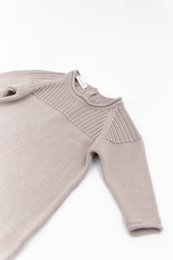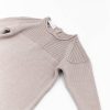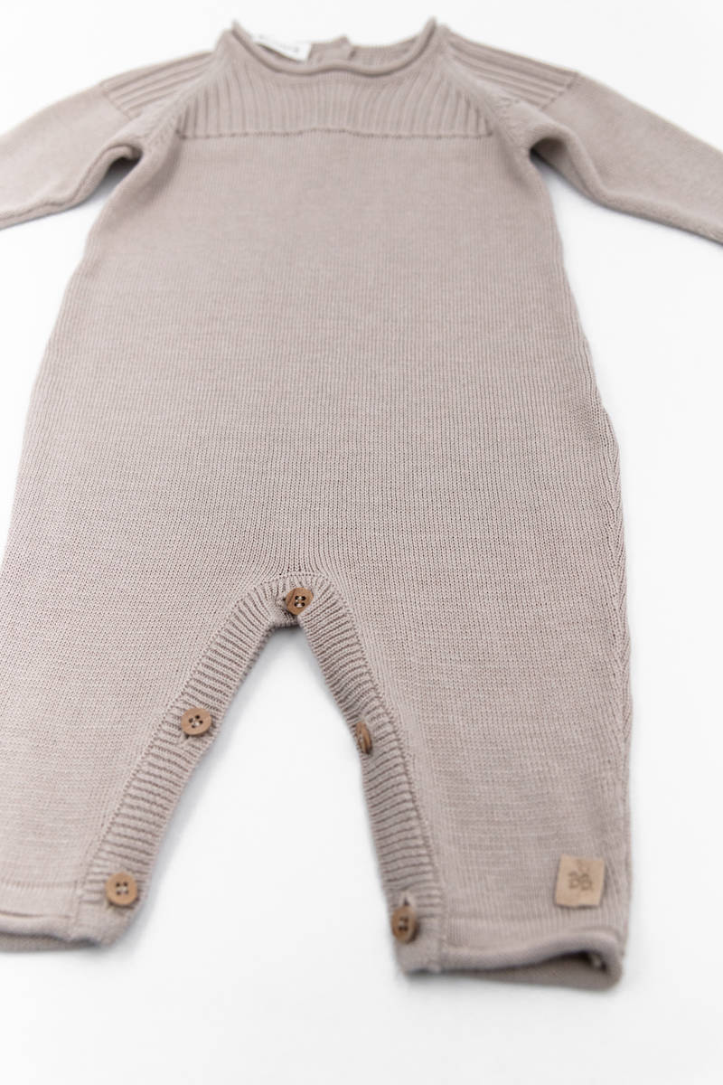 Едноделен бебешки костим „Tutina“, изработен од бамбус вискоза и органски памук, мек и дишечки за чувствителната кожа на вашето бебе. Има практично отворање на грбот за лесно облекување и пресоблекување, комбинирајќи удобност, природни материјали и стилски изглед за секојдневни активности или посебни пригоди.