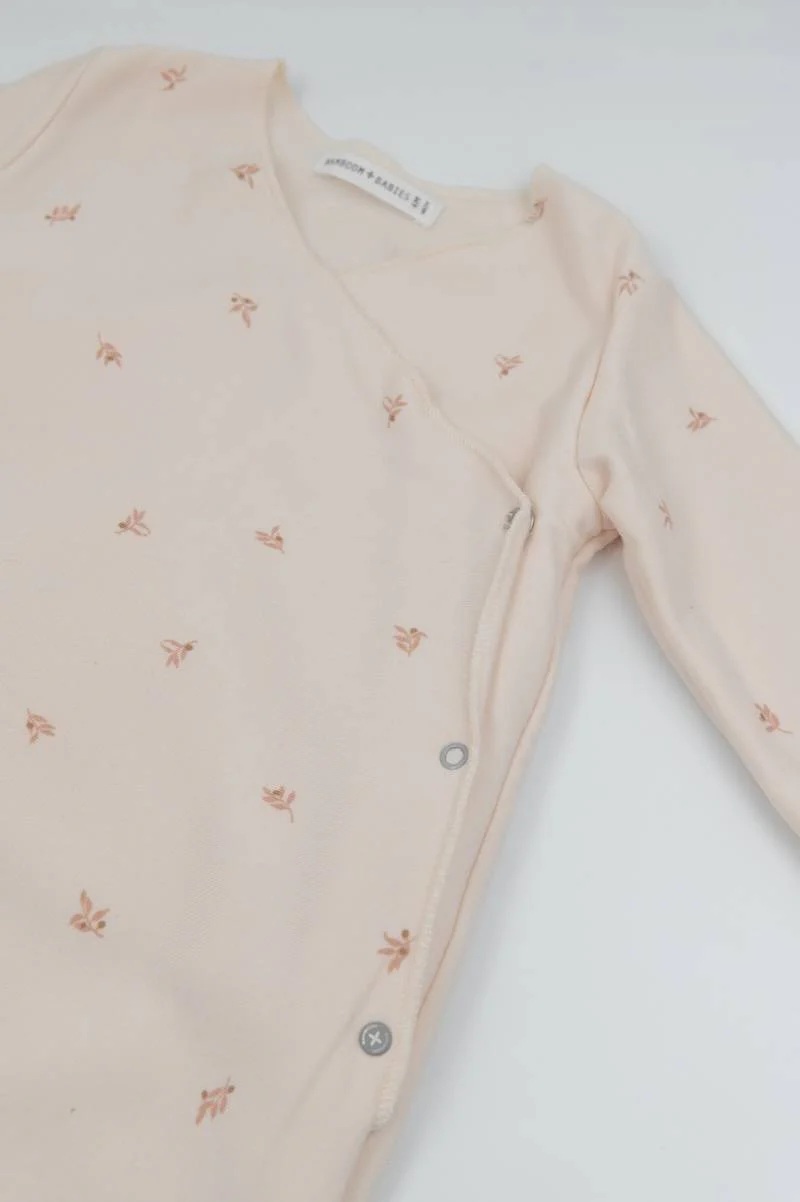 Шпикозни со затворени ногавици, изработена од бамбус вискоза и органски памук — материјали кои се мекани, дишечки и нежни за чувствителната кожа на вашето бебе. Овие шпихозни се удобен, практични и идеални за секојдневни активности, обезбедувајќи удобност и природна грижа до првите чекори.