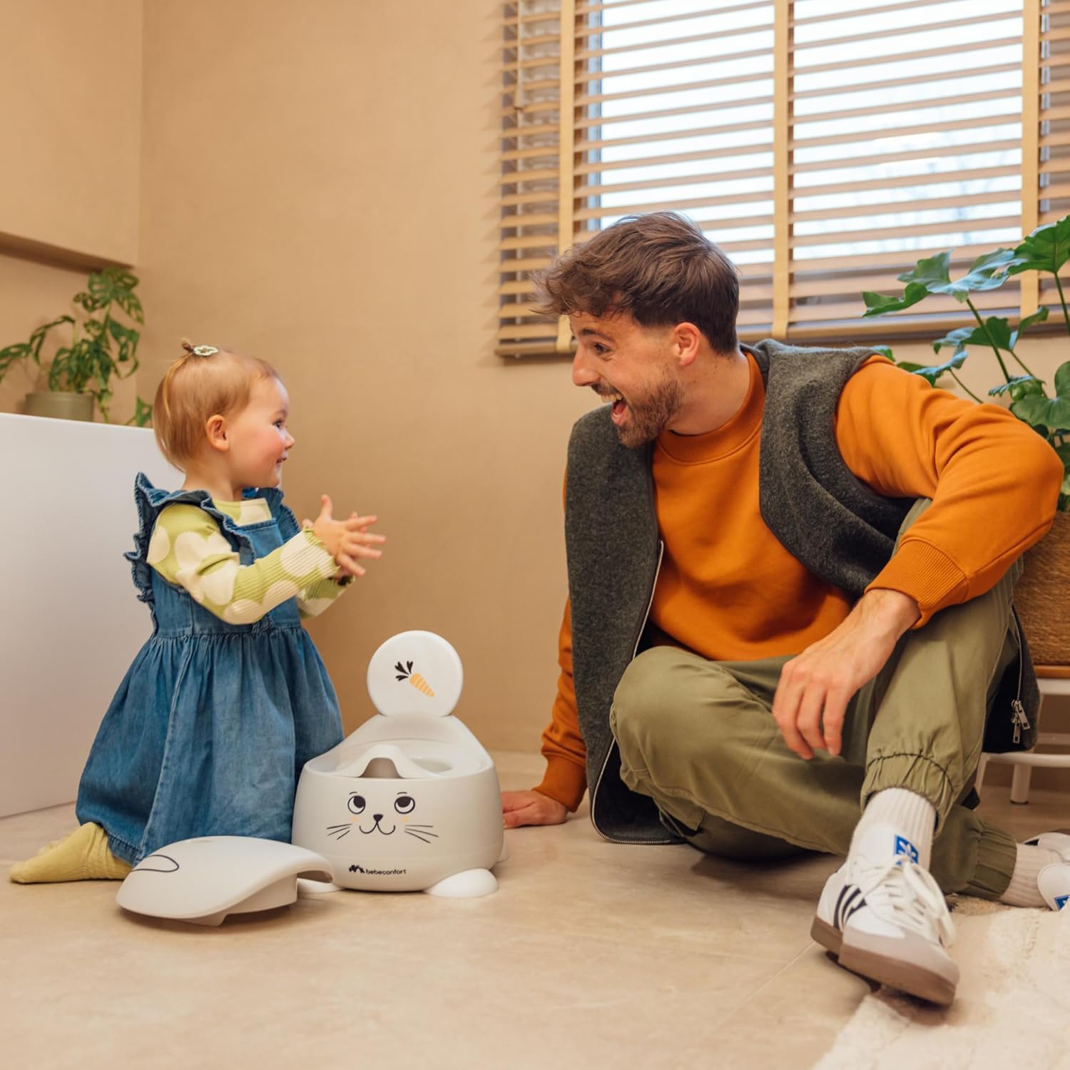 Дизајните желка и зајче им носат забава и сигурност, а меката, комфорно обликувана седалка го прави процесот пријатен и без стрес.