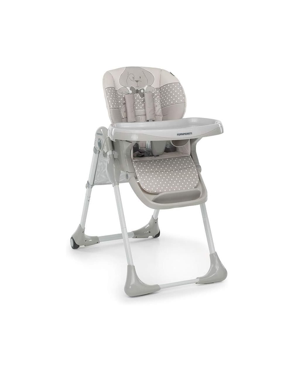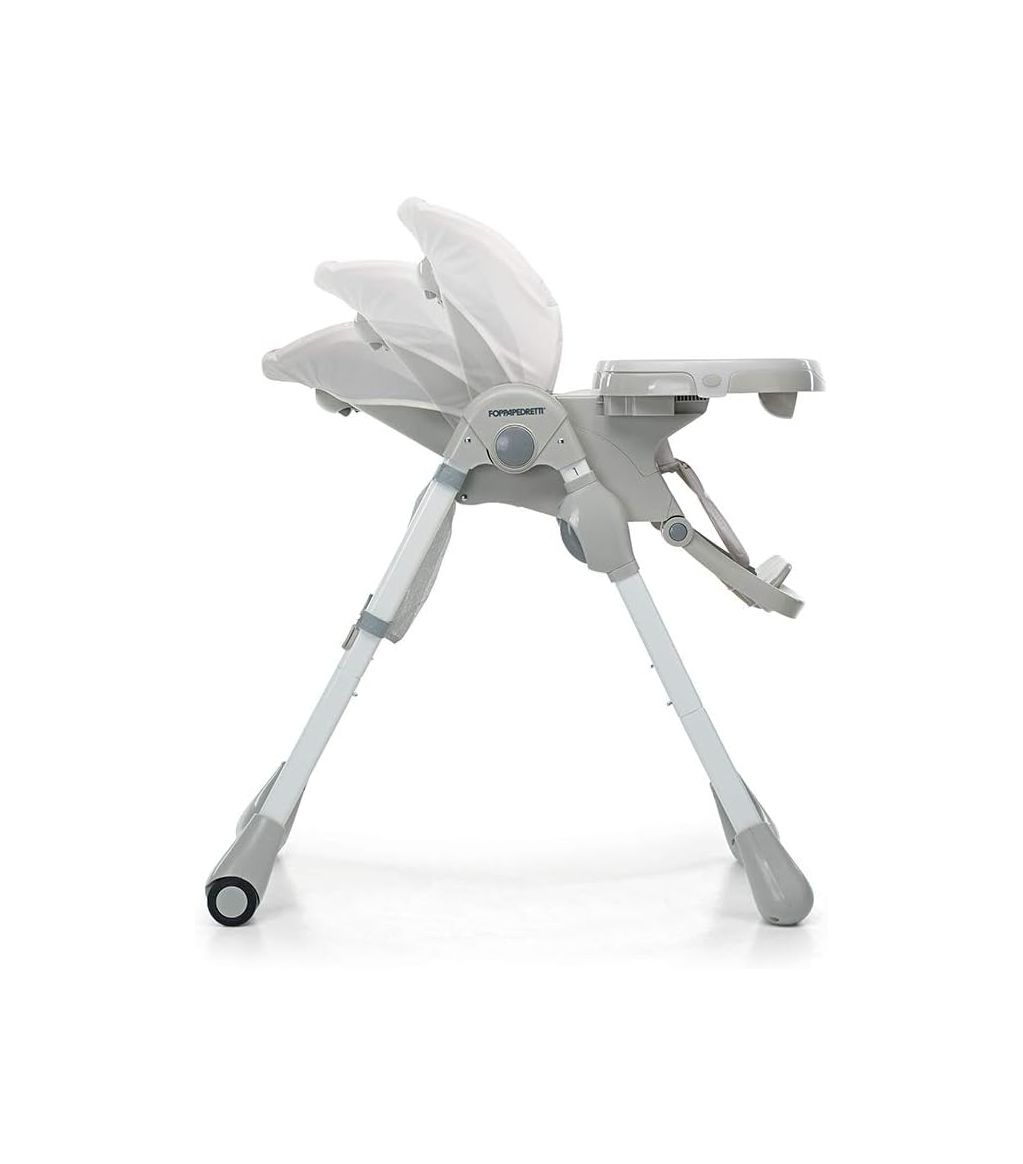 Столче за хранење „Meeting“ од Foppapedretti е практично и безбедно решение за вашето дете. Има седиште со можност за регулирање на висината и грб со повеќе позиции, 5-точки ремен за безбедност, послужавникот се подесува на 3 далечини и дополнително се отстранува горниот дел за лесно чистење. Идеално е за деца од 6 месеци до 15 кг тежина, со две гумени задни тркала за полесно движење и кошничка за складирање. Тежината е 8,5 кг, димензиите отворено се В 104 × Д 86 × Ш 58,5 см, а склопено В 99 × Д 42 × Ш 58,5 см.