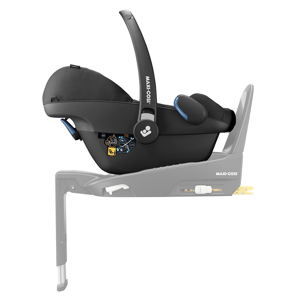 Наслонот на главчето многу лесно се подесува со што се обезбедува комфорно прилагодување, со пилотски појаси што обезбедуваат многу лесно ставање и вадање на бебето од Pebble Pro i-Size . Исто така, Pebble Pro i-Size многу лесно се вади од автомобилот и лесно се поставува на вашата Maxi Cosi или Quinny колички.