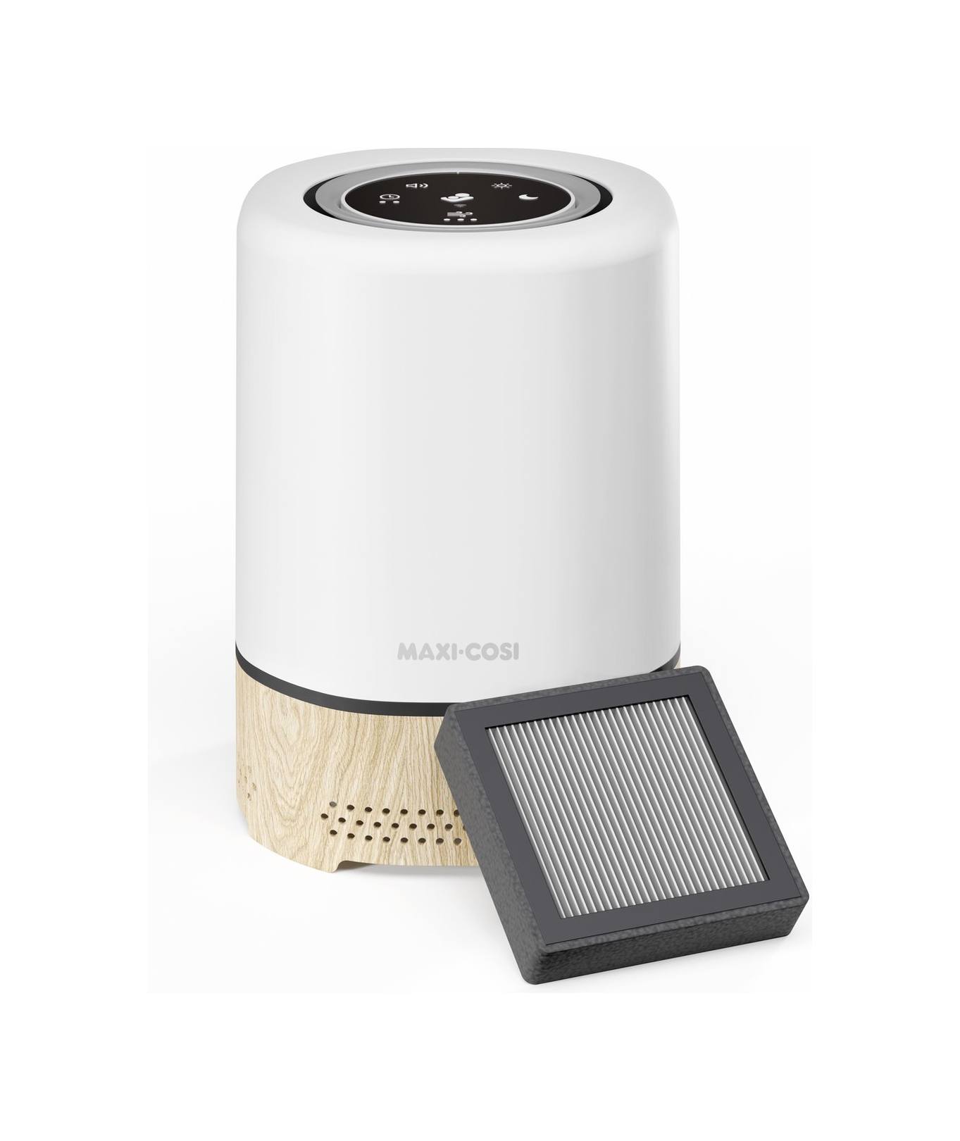 Maxi-Cosi 3-in-1 Smart Air Purifier White е интелигентен уред дизајниран да обезбеди чист, мирен и безбеден амбиент во домот, особено во просторот каде престојува бебето. Овој уред комбинира прочистување на воздух, ноќно светло и смирувачки звуци во еден модерен и компактен систем.