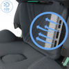 Pearl XL Slide Pro обезбедува и исклучителен комфор – има повеќе позиции за наслонување, прилагодлив потпирач за глава и ClimaFlow ткаенини со вентилација за пријатна температура во текот на целата година. Материјалите се меки, квалитетни и делумно изработени од рециклирани материјали, со грижа за околината.