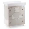 Фиокарот има три големи фиоки, ергономска кадичка за бањање на бебето, која се наоѓа под подлогата за пресоблекување, мека подлога за пресоблекување (се користи до 12 месеци) и 4 тркала за лесно пренесување на фиокарот, од кои две имаат кочница за да се фиксира по потреба.