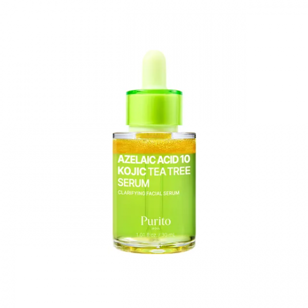 Purito Azelaic Acid 10 Kojic Azulene Serum е серум за изедначување на тонот и смирување на кожата. Содржи 10% азелаична киселина за намалување на црвенило, акни и дамки, којична киселина за осветлување и азулен за смирување на чувствителна и иритирана кожа. Серумот ја подобрува текстурата, го намалува воспалението и ги спречува пигментациските дамки.