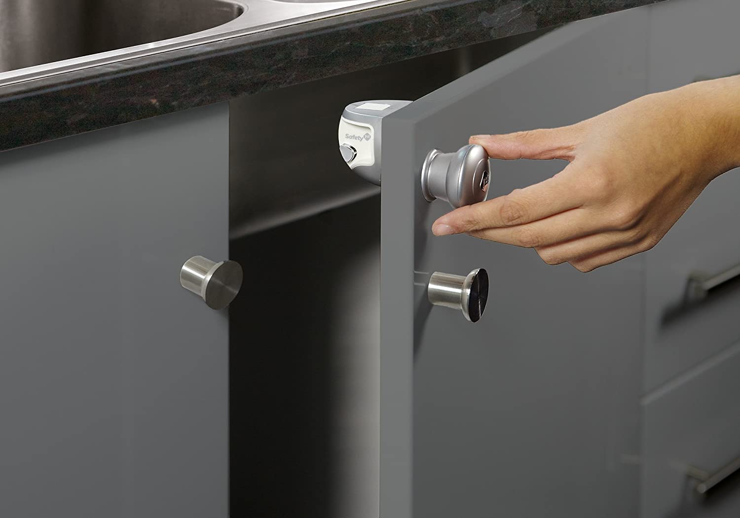 Одржувајте ги плакарите и фиоките надвор од границите на малите радознали дечиња, со помош на безбедносната магнетна брава која се мести во внатрешниот дел од мебелот. Лесно се инсталира со лепак и со завртки. Има моќен магнетен клуч за да се отвори кога ќе треба. Со сигурносниот визуелен индикатор SecureTech се прави проверка дали бравата е правилно заклучена.