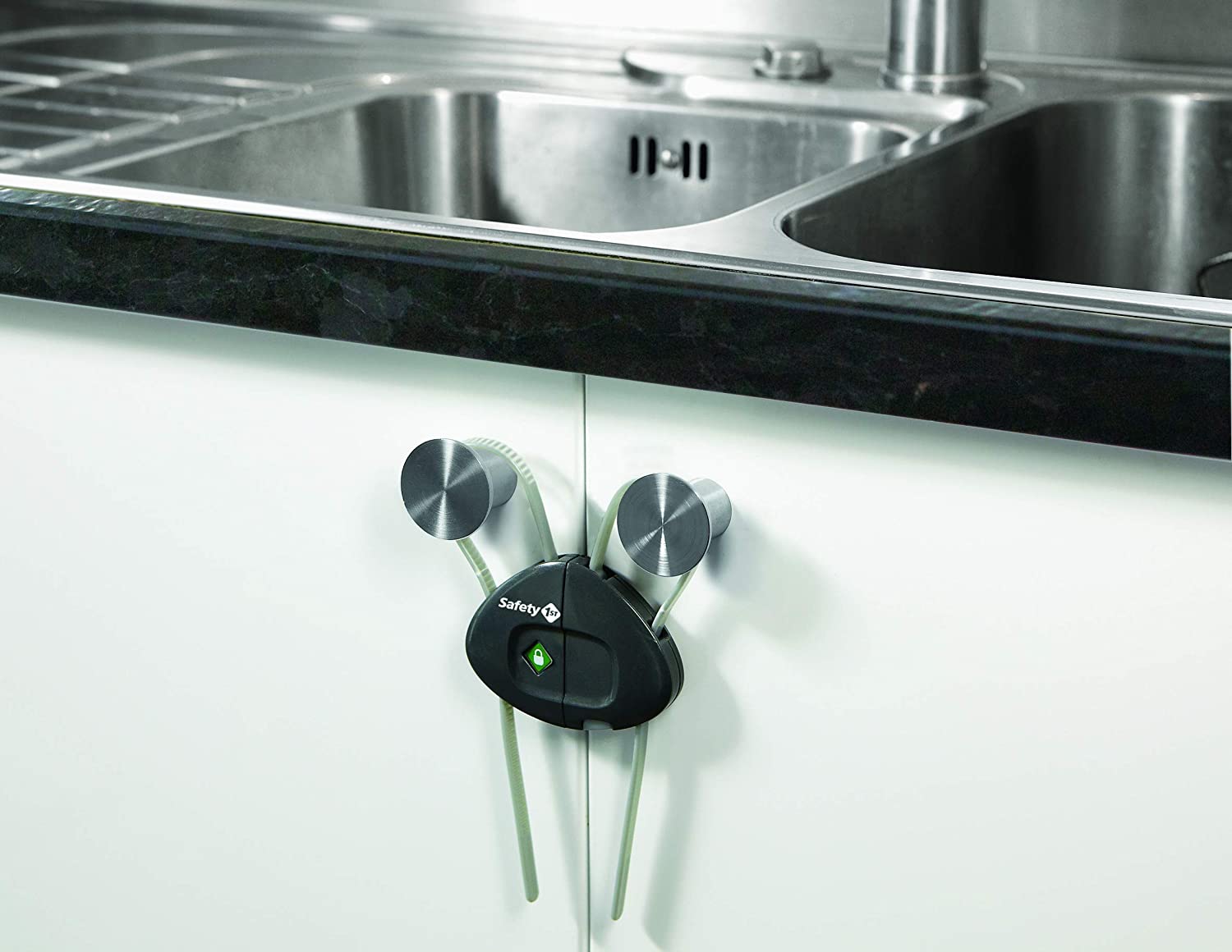 Овој стегач ги држи двете врати заедно со заклучување на рачките заедно. Outsmart Flex Lock има големо копче што го тера вашето дете да мисли дека треба да се притисне за да се отвори. Но, не е! Притискањето на ова копче нема никаков ефект и го одвлекува вниманието на вашето малечко од вистинскиот начин за отворање на бравата. Ниту најпаметните деца нема да го отворат!