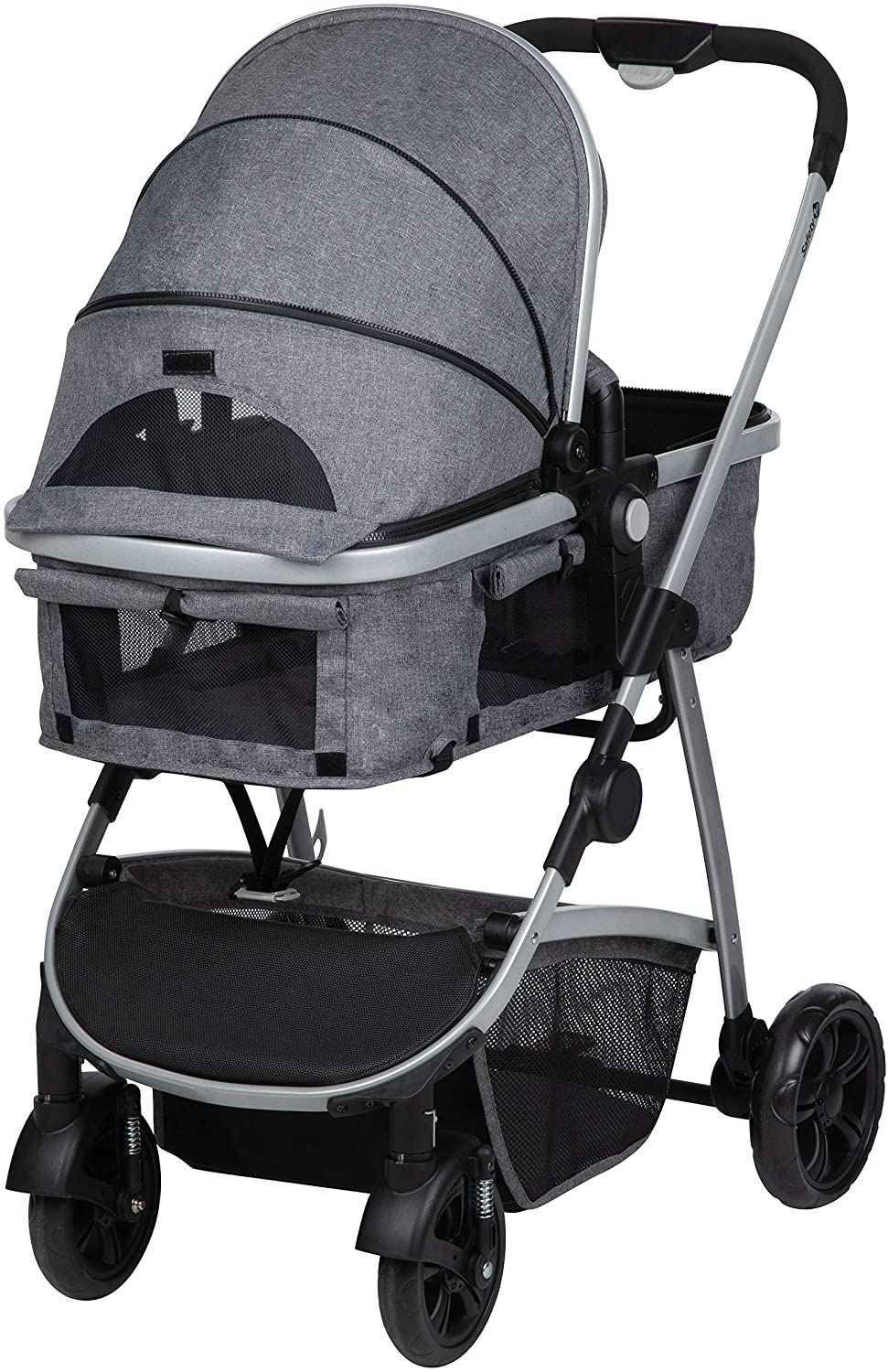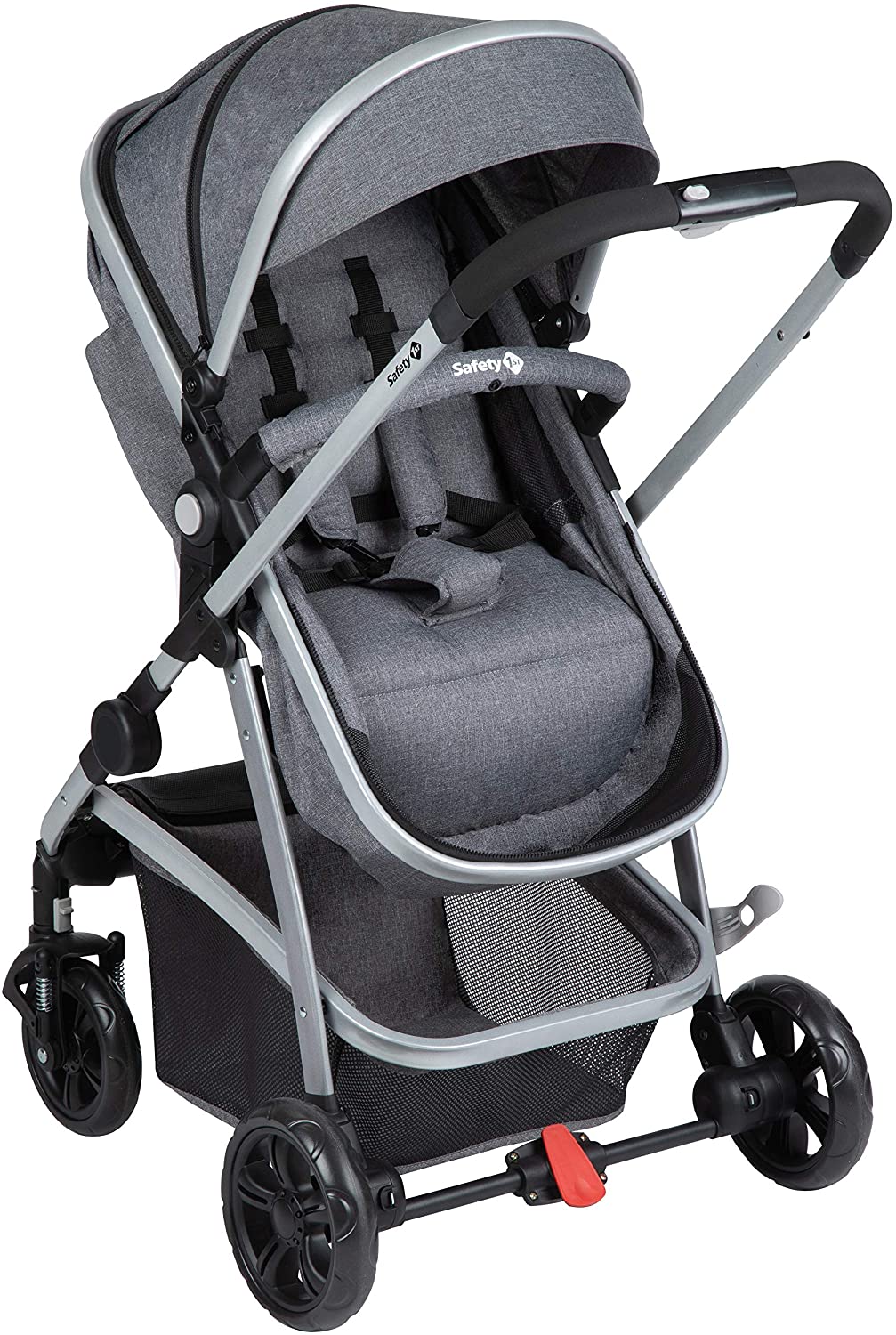 Safety 1st Hello (2 во 1) е практична градска количка со модерен дизајн. Седиштето се трансформира во удобна корпа за новороденче, па со тоа Safety 1st Hello (2 во 1) може да ја користите од новороденче. Ултра лесна за возење, се управува со само една рака и рачката за возење се подесува во неколку висини. Седиштето е реверзибилно, што значи детето може да го поставите во Safety 1st Hello кон околината или кон вас. Има неколку позиции за подесување на наслонот за седење/лежење достигнувајќи скроз лежечка позиција што овозможува релаксирано спиење на детето во Safety 1st Hello. Предните тркала ротираат за 360 ° и може лесно да се закочат. И предните и задните тркала се амортизирани и изработени од полна гума што значи дека Safety 1st Hello може да се вози по секаков терен, а исто така може и лесно да ги отстраните. Со кочница на задните тркала и за максимална безбедност со 5 точки на врзување на безбедносните каиши.Safety 1st Hello има екстра голема шопинг торба, вклучени се адаптери кои пасуваат за Maxi-Cosi транспортер, држач за чадорче и кабаница за заштита од дожд и ветер.