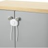 Овој стегач ги држи двете врати заедно со заклучување на рачките заедно. Outsmart Flex Lock има големо копче што го тера вашето дете да мисли дека треба да се притисне за да се отвори. Но, не е! Притискањето на ова копче нема никаков ефект и го одвлекува вниманието на вашето малечко од вистинскиот начин за отворање на бравата. Ниту најпаметните деца нема да го отворат!