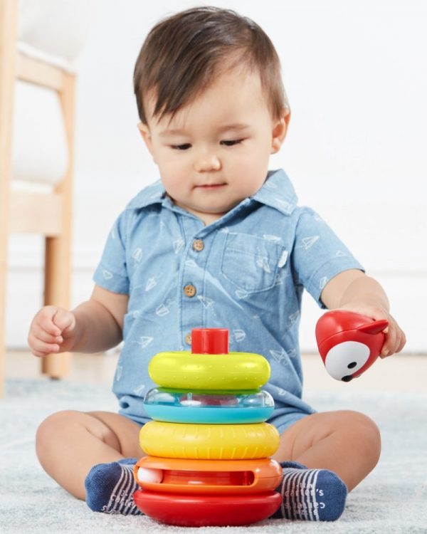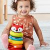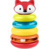 Класична играчка за редење прстени што ја развива фината моторика, координацијата рака-око и сетилното истражување. Бебето ќе ужива во фаќањето и редењето на четирите шарени прстени и плишаната лисичка на врвот, учејќи бои, броење и причина–последица.