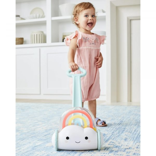 Ова шарено push-играчка е дизајнирана за мали деца 12+ месеци. Со секој чекор, шарени топчиња се движат и создаваат забавни звуци, поттикнувајќи ја имагинацијата, слухот и учењето на причина–последица. Помага за развој на груба моторика, координација на рака-око и самодоверба при одење.