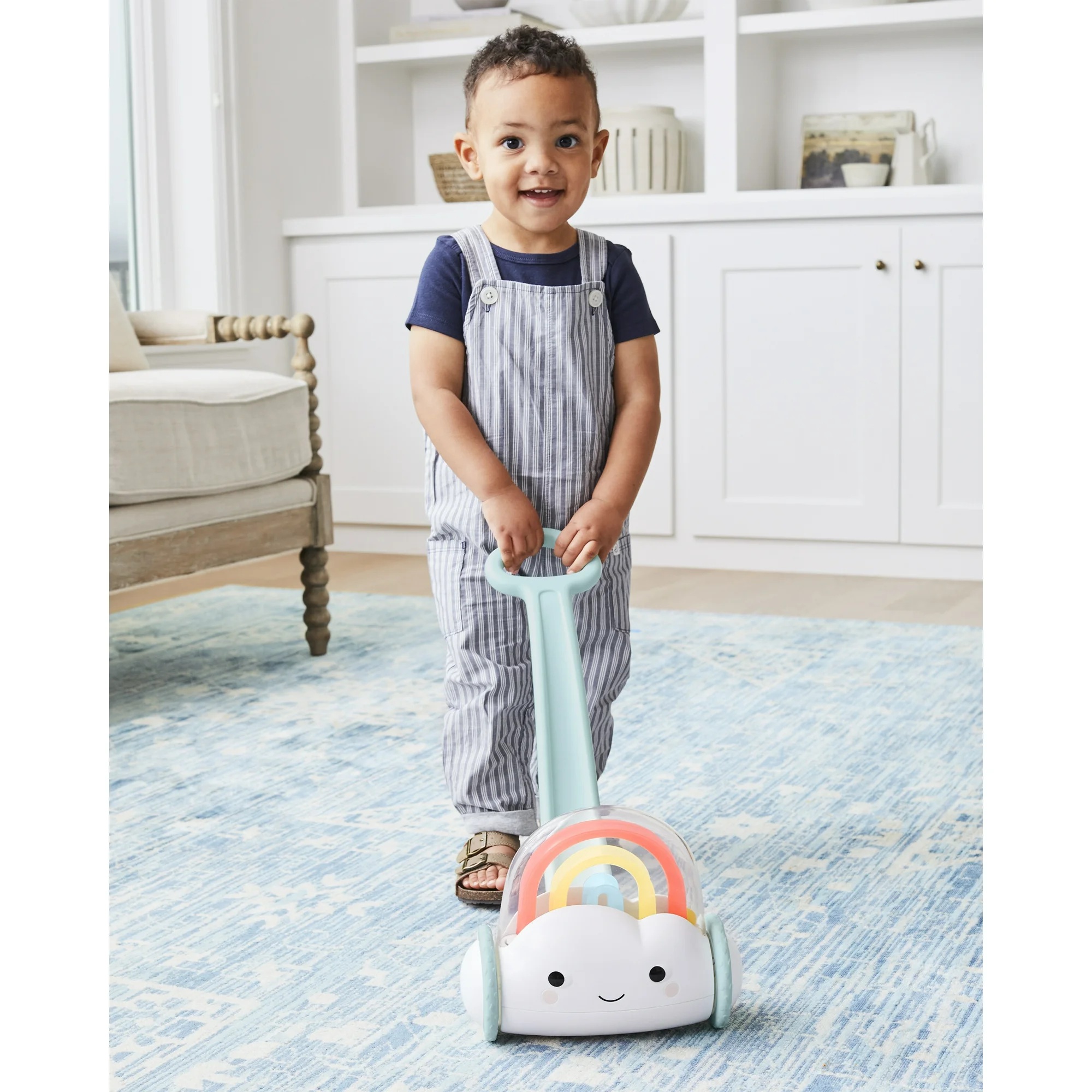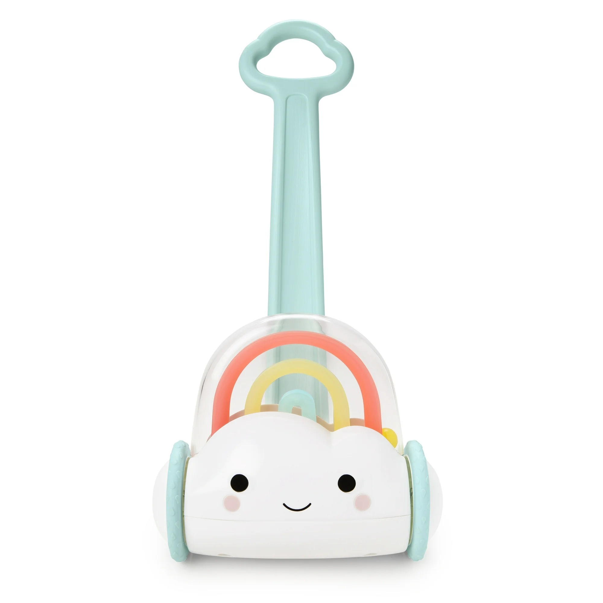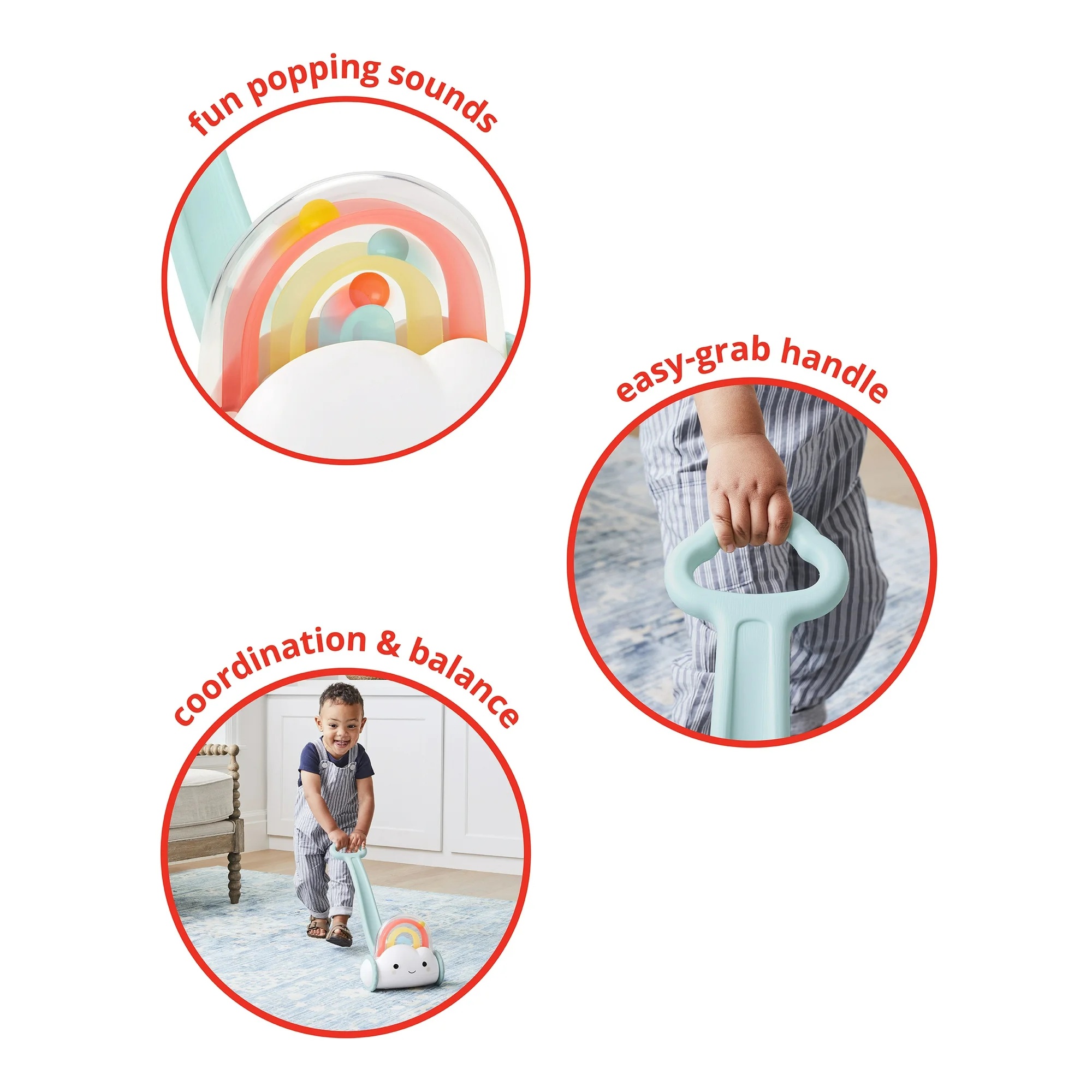 Ова шарено push-играчка е дизајнирана за мали деца 12+ месеци. Со секој чекор, шарени топчиња се движат и создаваат забавни звуци, поттикнувајќи ја имагинацијата, слухот и учењето на причина–последица. Помага за развој на груба моторика, координација на рака-око и самодоверба при одење.