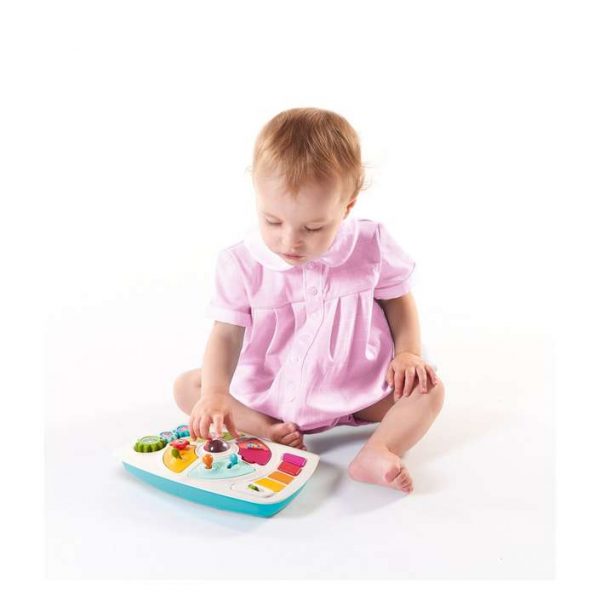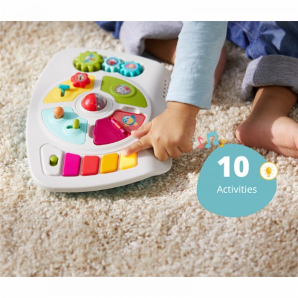 Стоењето му дава на вашето бебе сосема нова гледна точка. Висината на електронската табла е совршена за фазата на крстарење и ќе го искушува вашето бебе да истражува додека стои, да вежба рамнотежа и да стекне сила.