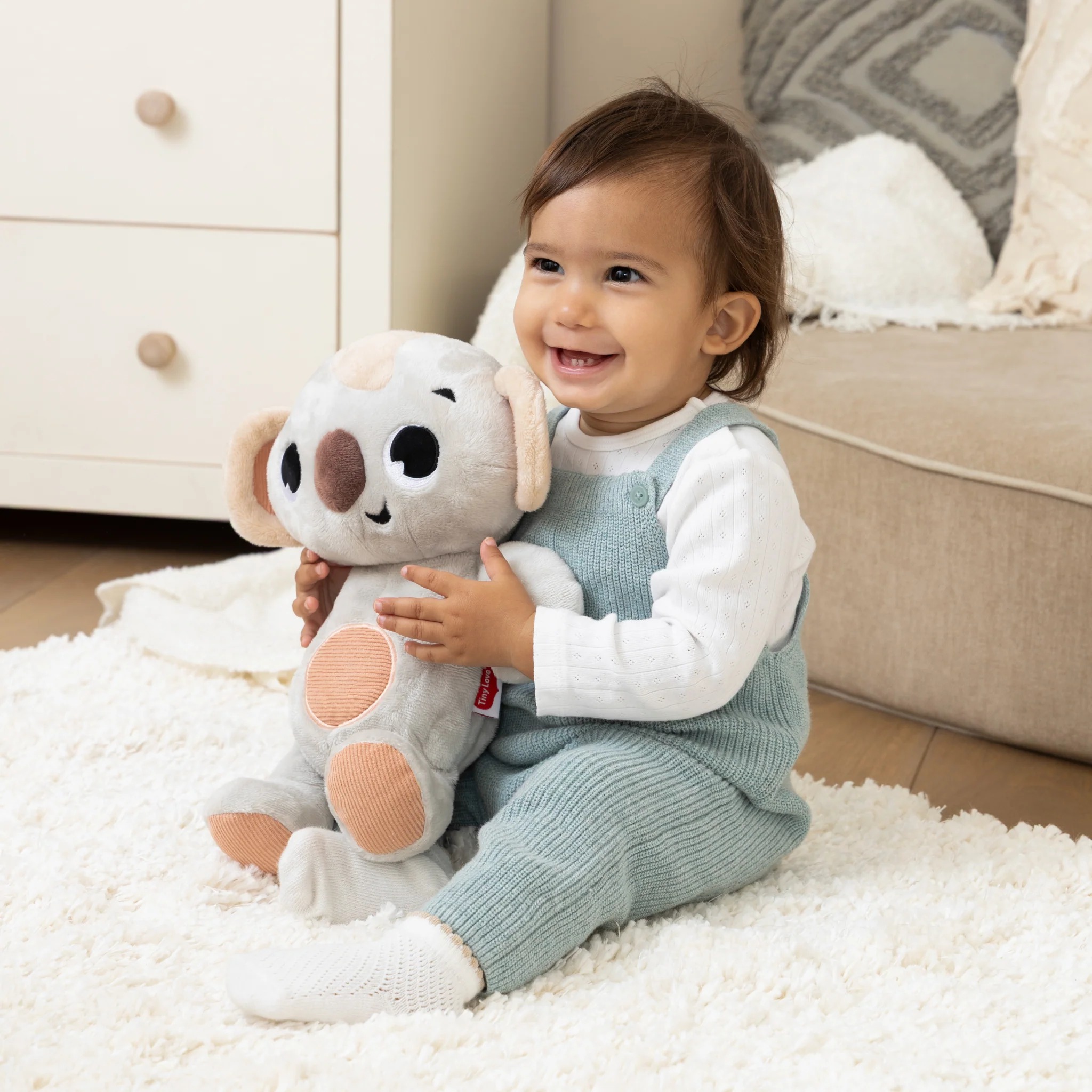 Шармантен, мек придружник за гушкање со низа возбудливи карактеристики. Движењето на стомачето на Коалата го имитира природното, ритмичко дишење, нудејќи смирувачки ефект. Високо приспособливи поставки за да одговараат на индивидуалните преференции на вашето малечко. Создадено со љубов и грижа од нашите експерти за развој на деца. Дизајнирано да го утеши вашето бебе од првиот ден, со смирувачки звуци, светла и меки гушки додека расте. Изработено од мека плишана ткаенина.