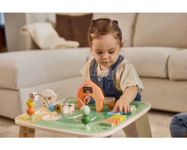 Дрвена маса за активности, шарена авантура на фармата што ја поттикнува љубопитноста, гради вештини и ги држи малите раце среќно ангажирани со часови!