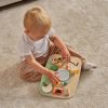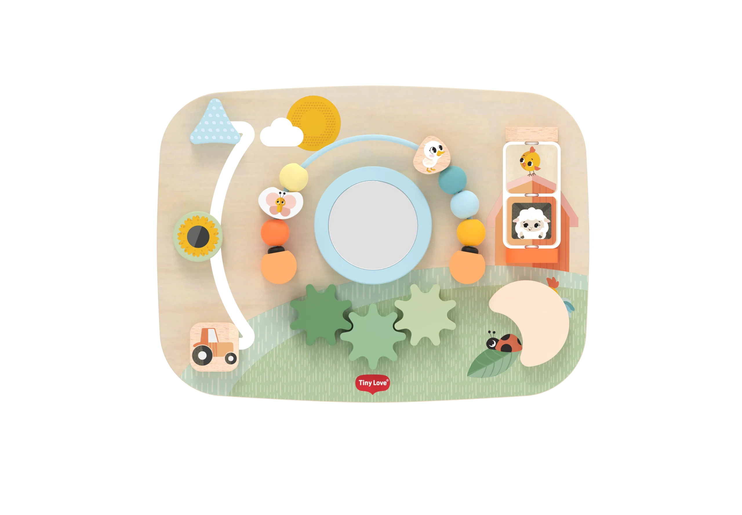 Дрвена едукативна табла која поттикнува практично истражување и тематска игра на фарма. Истражувањето на различните елементи ја зајакнува фината моторика, контролата на рацете и координацијата. Интерактивните карактеристики ги покануваат децата да истражуваат движења и едноставна логика, поддржувајќи го раниот когнитивен развој. Забавна активност за заедничко уживање, лесна за носење каде било. Погодна за лежење на стомак, седење или стоење, поддржувајќи ја играта во различни развојни фази.