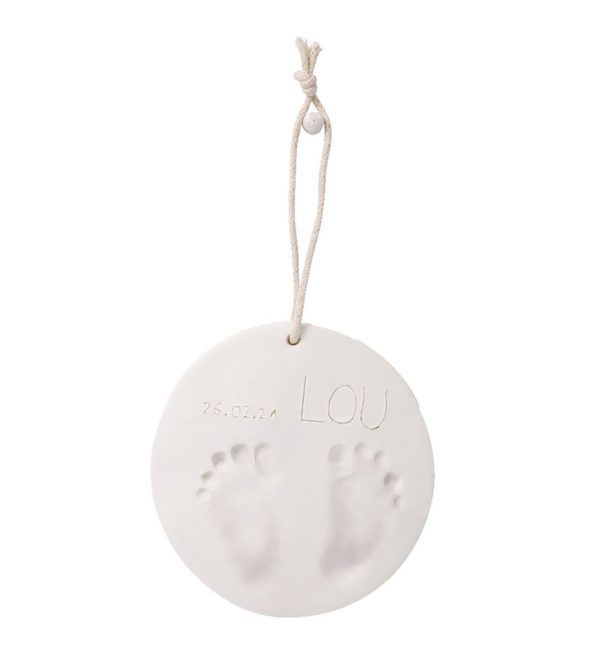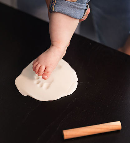 Комплетот за отпечатоци вклучува сè што ви треба: тесто за моделирање, сукало за расукање на тестото и тркалезна рамка за да му дадете облик на тестото