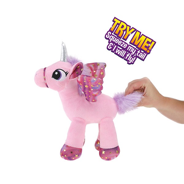 Нежниот уникорн се смета за вистински моден хит помеѓу играчките. Со оваа играчка секое дете ќе биде среќно. Ако ја повлечете опашката нејзините крилја одат нагоре и надолу. Играчката е пријатна на допир и одлична за гушкање.