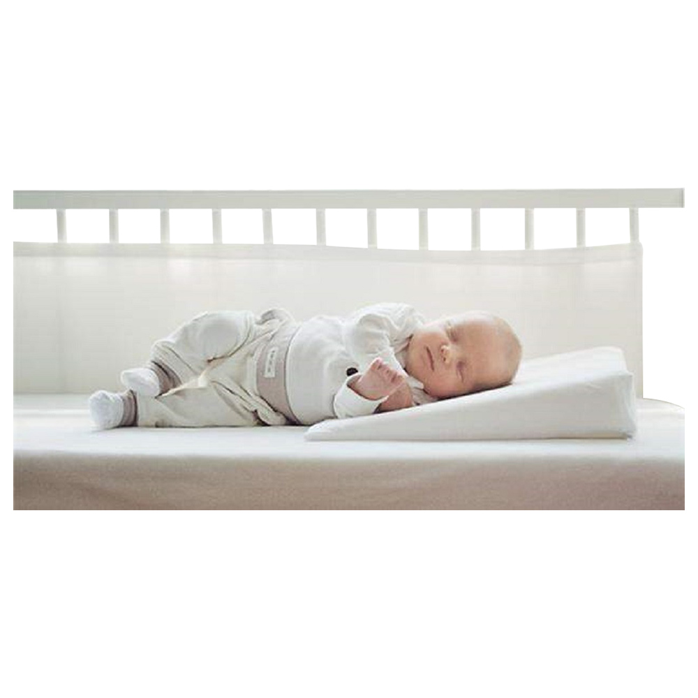 Обезбедува правилно покачување на аголот за главата и торзото на бебето, спречувајќи поврат на храната и задушување. Поддржувајќи ја главата и грбот на бебето, бебешката аголна перница ги ублажува симптомите на киселина и го олеснува дишењето предизвикано од настинка или грип, отворајќи ги дишните патишта за полесно смирување и удобно спиење на бебето. Горниот дел е под агол од 15 степени, може да се користи за во детски колички или да се стави под детскиот душек.