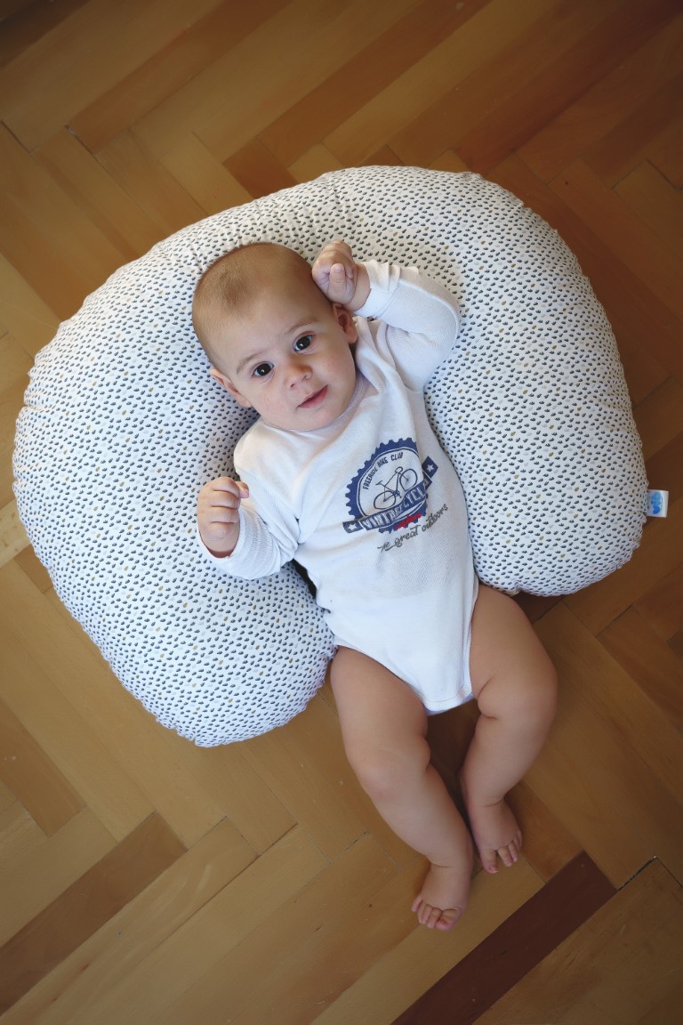 viBBoo Feedy се користи за поддршка и правилно позиционирање на бебето додека лежи и седи и Ви ја обезбедува идеалната позиција на поддршка и помош при доењето или хранењето со шише.