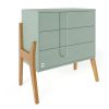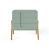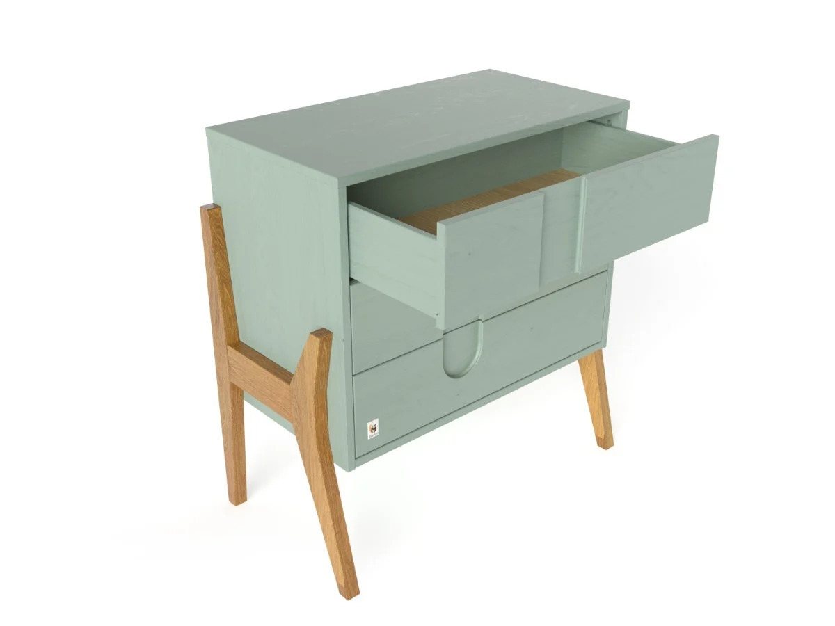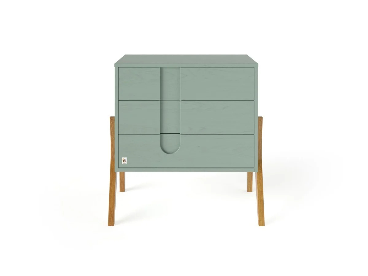 Комодата е внимателно дизајнирана има 3 пространи фиоки, кои нудат доволно простор за сите неопходни работи за вашето бебе, без да заземаат премногу место. Дополнително, можете да ја купите и дабовата подлога за повивање, која хармонично се вклопува во дизајнот на комодата.