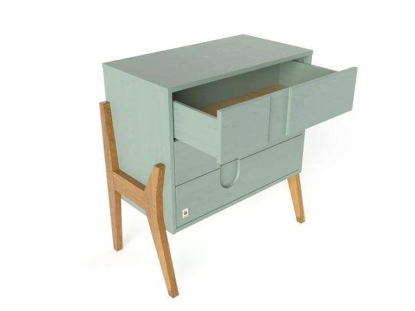 Комодата е изработена од цврсто дрво од даб и бор – комбинирајќи ја силата со природната топлина. Дрвото е третирано со еколошки, безбеден за деца природен восок – кој дава суптилен сјај, ја одбива влагата и го штити мебелот од нечистотија.