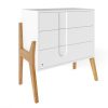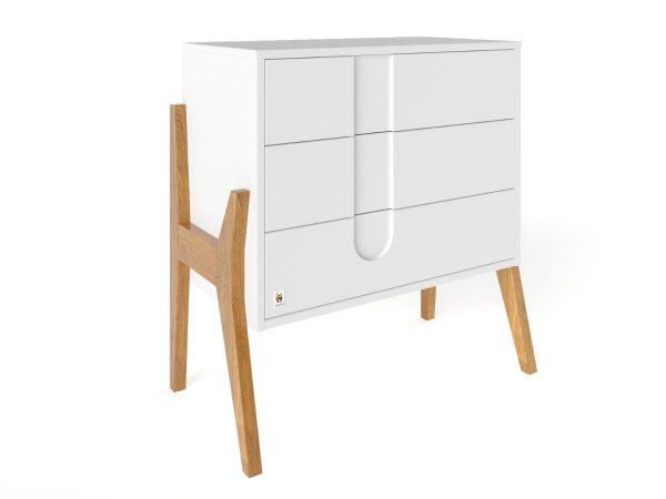 Комодата е внимателно дизајнирана  има 3 пространи фиоки, кои нудат доволно простор за сите неопходни работи за вашето бебе, без да заземаат премногу место. Дополнително, можете да ја купите и дабовата подлога за повивање, која хармонично се вклопува во дизајнот на комодата.